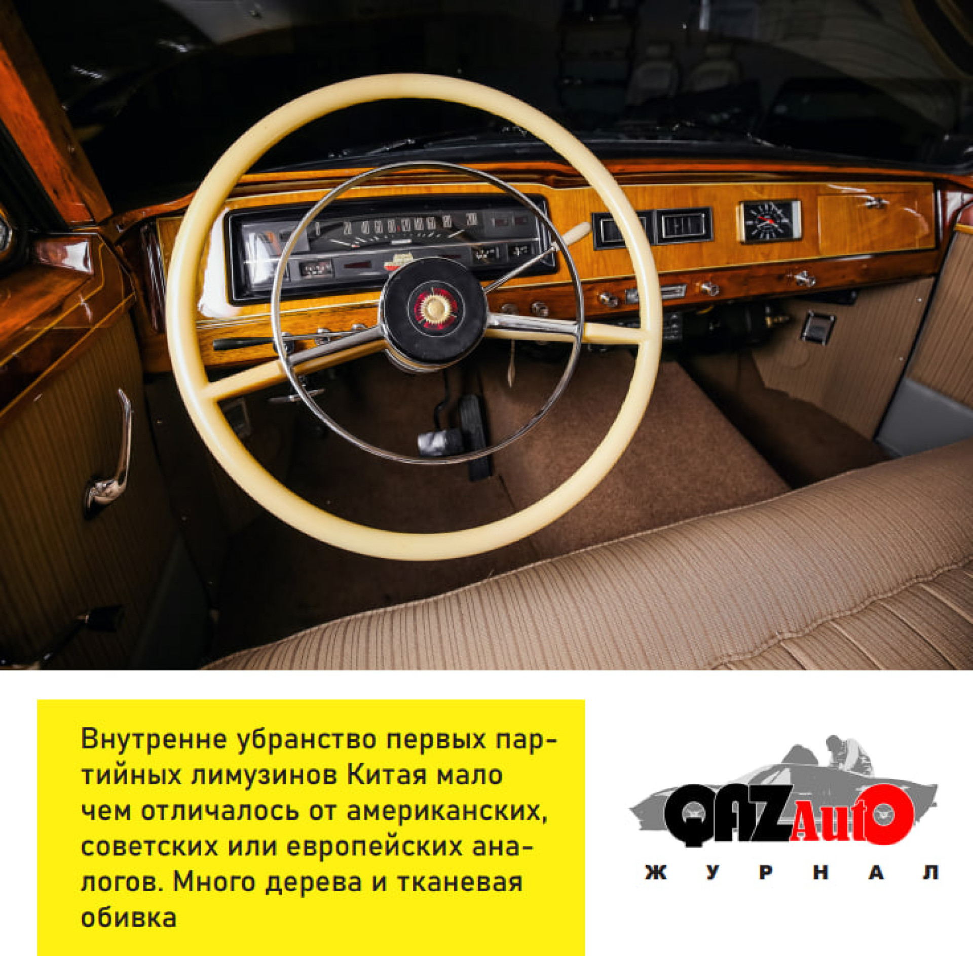 Кузов лимузина с тремя рядами сидений (средний – откидные страпонтены) и стеклянной перегородкой позади первого ряда не был особо роскошным. Правда, в салоне стоял аромат древесины дорогих пород, некоторые панели были украшены инкрустацией в чисто китайском стиле, а сиденья обтянуты дорогим сукном.