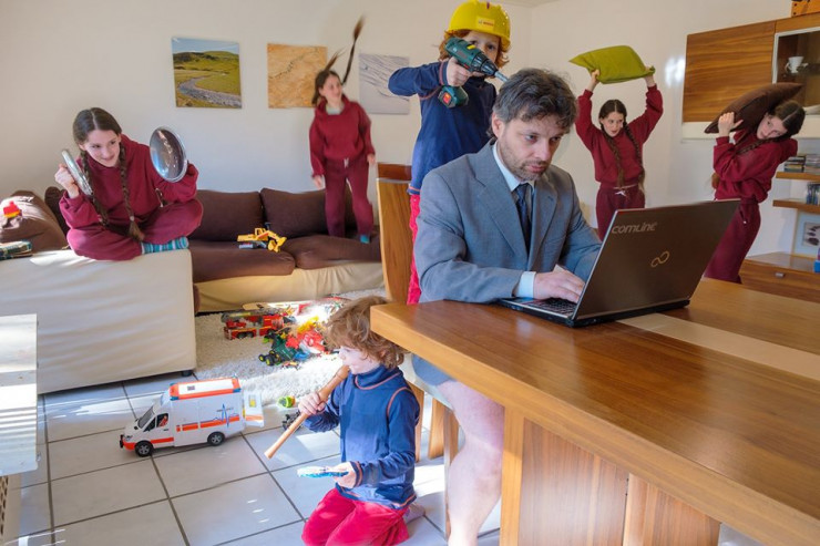 Затем наступила вторая стадия, когда работники вдруг осознали, что вообще-то садики и школы не работают так же, как и твой офис. И работать, когда рядом орут дети, "немного" (дико) неудобно. А еще, оказывается, эти сладкие малыши едят не три раза в день, а как минимум в два раза больше. Поэтому одновременно приходится еще и с поварешкой дружить чаще, чем когда-либо.