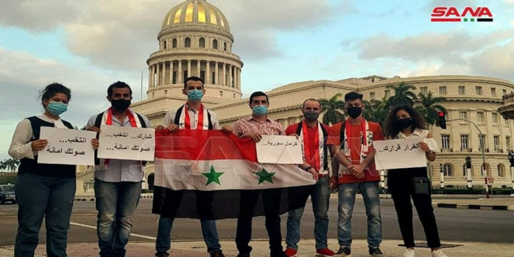 Сирийцы, проживающие за рубежом, имели возможность отдать свои голоса в дипломатических представительствах, действующих в 46 странах, в том числе в Европе, Австралии, Африке, Латинской Америке, Индии, Пакистане, Китае, Японии, ОАЭ и Султанате Оман.