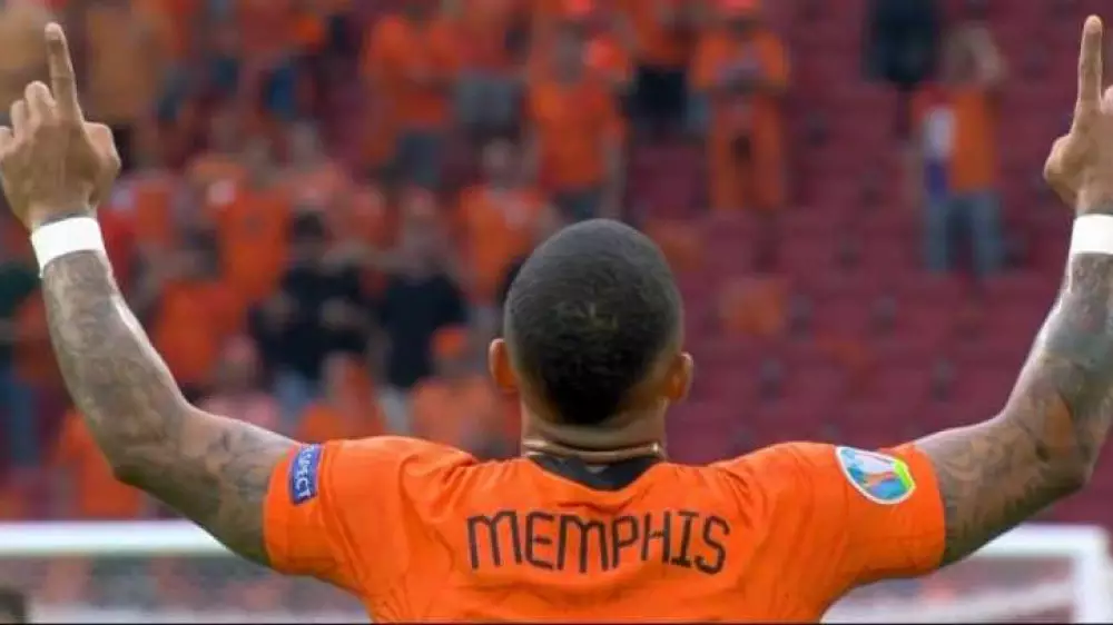 Первый гол на 11-й минуте с пенальти, который был назначен за фол Давида Алабы против Дензела Дюмфриса, забил Мемфис Депай.