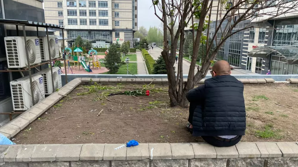 С еще одним жильцом дома корреспондент Tengrinews побеседовал лично. Мужчина, пожелавший остаться неизвестным, сидел у места, куда вчера из окна своей квартиры упал "стрелок".
