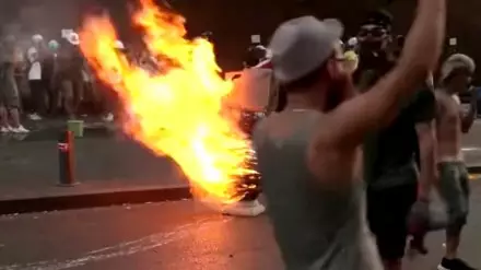 День траура по погибшим от взрыва в порту Бейрута закончился беспорядками Скриншот с видео.