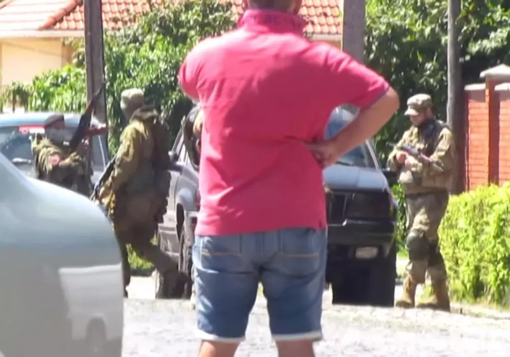 "Это оперативное видео, снятое на месте событий у спорткомплекса "Антарес" на улице Лермонтова в Мукачево. Это самое начало инцидента, когда на место уже прибыла милиция. То есть видео до перестрелки на АЗС "Народная", где были уничтожены автомобили МВД", - говорится в пояснении к записи. По словам депутата, на видео все люди в камуфляже это представители "Правого сектора".