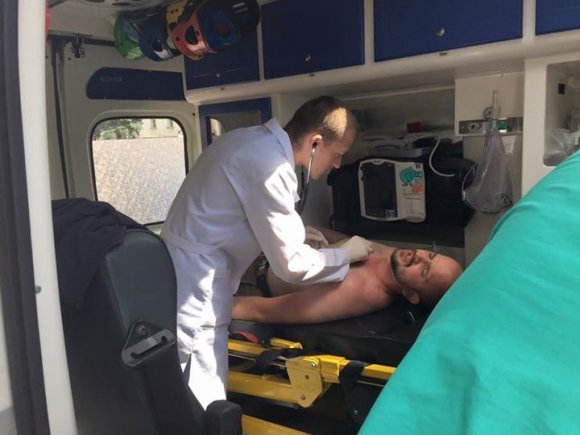 Журналиста Крутчака увезли на "скорой". © Facebook
