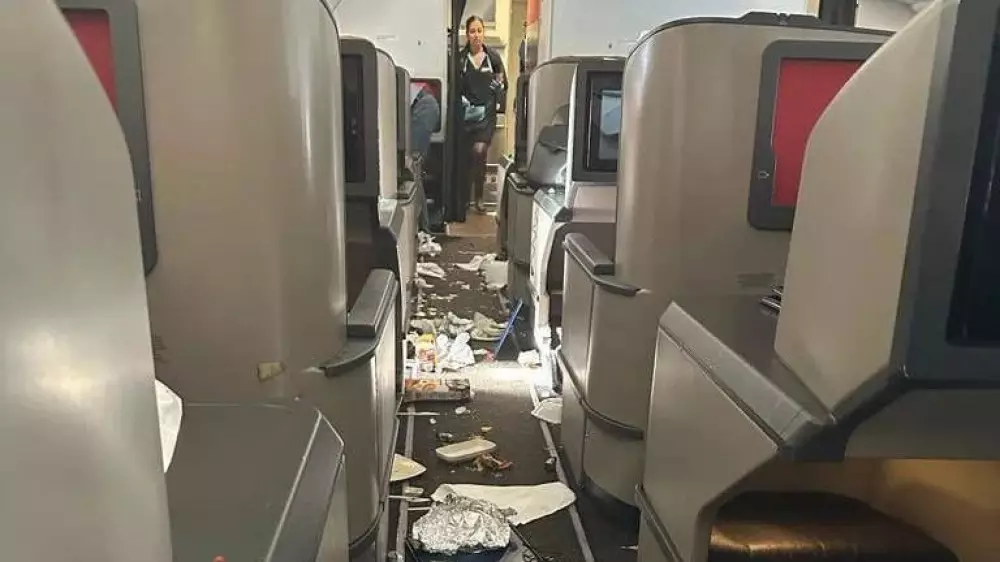 Судя по видео, в этот момент пассажиры обедали и еду разбросало по всему салону. Кое-где банка с газировкой даже пробила потолок самолета.