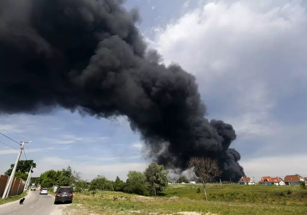 По словам очевидцев, на месте пожара на нефтебазе прошел небольшой дождь. Осадки падали сквозь черный столб дыма, образуя черные капли. Кроме того, есть большая опасность, что пламя может перекинуться на соседний терминал другого оператора - сеть АЗС KLO. С базы в экстренном порядке организована откачка светлых нефтепродуктов и сжиженного газа.