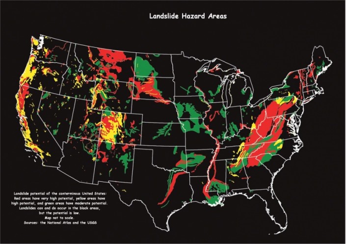 Известно, что в США сели и оползни происходят довольно часто. Особенно это актуально для Северной Каролины, Западной Вирджинии, Кентукки, Пенсильвании, Теннесси, Колорадо, Южной Дакоты, Западной Калифорнии, Орегона, Вашингтона, отчасти Техаса и Луизианы. В этих штатах власти стараются минимизировать потери во время стихийных бедствий.