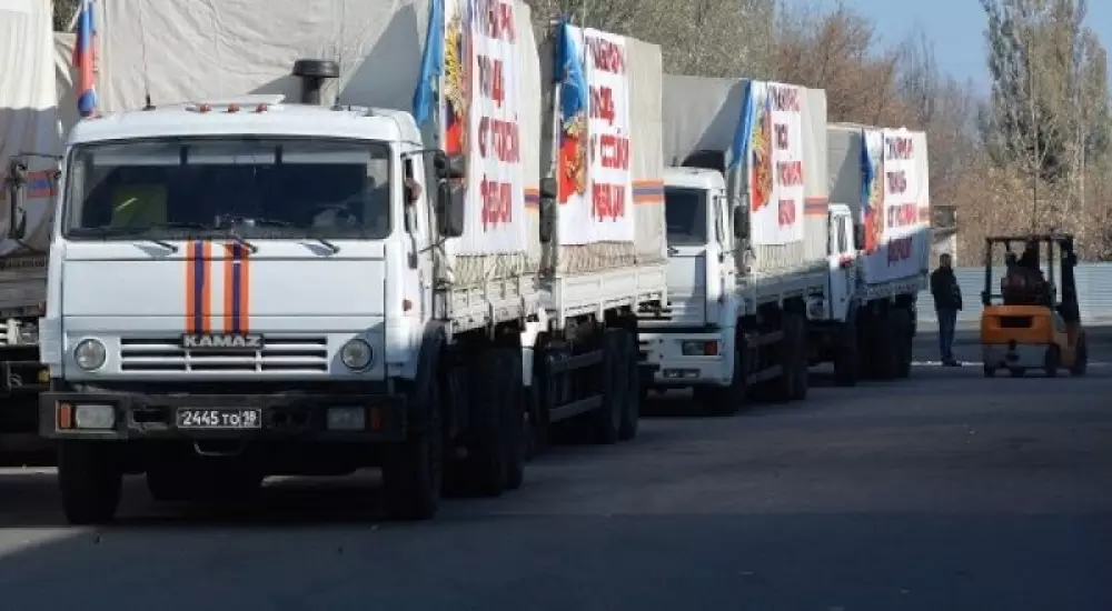 Сообщается, что колонна разделится на две части. В одну из них войдут более 90 автомобилей, которые доставят в Донецк более 900 тонн груза. Примерно столько же тонн привезут в Луганск более 80 машин.