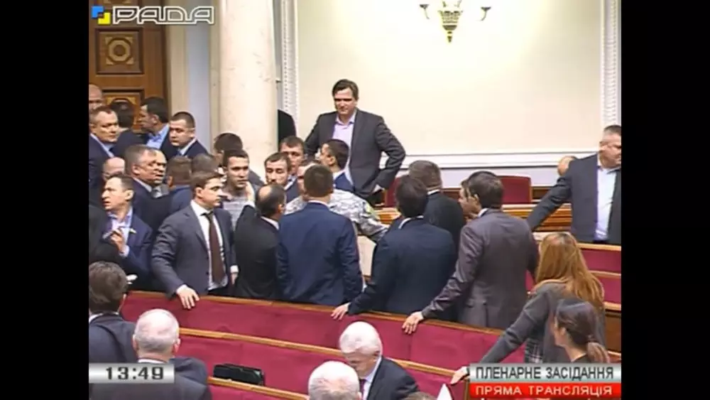 В Верховной Раде Украины народные депутаты Сергей Мельничук, Олег Ляшко, Сергей Пашинский и Игорь Мосийчук устроили потасовку, передает корреспондент Tengrinews.kz.