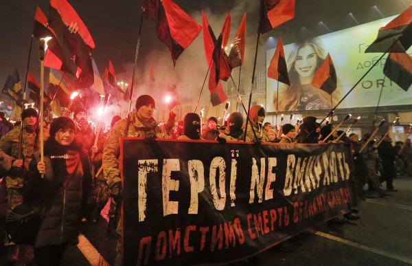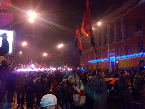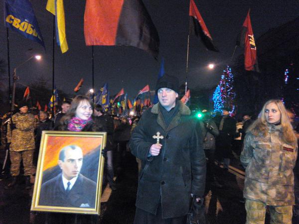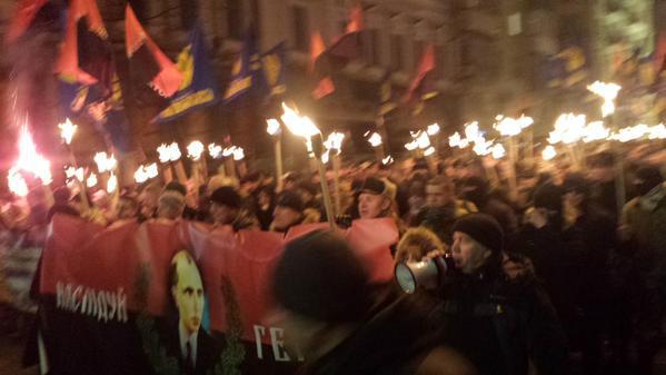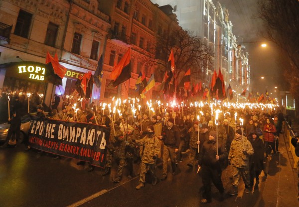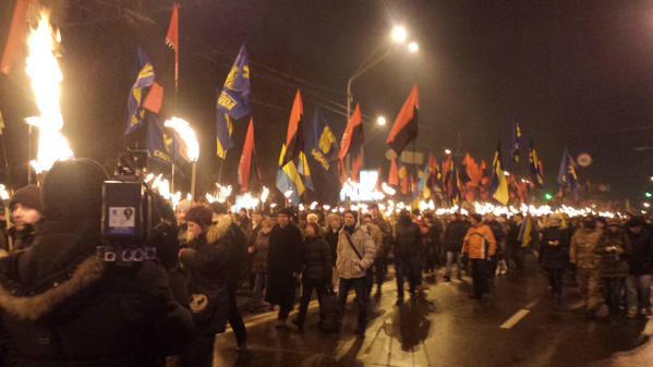 Вечером 1 января в центре Киева состоялось многотысячное факельное шествие украинских националистов по случаю годовщины со дня рождения лидера ОУН Степана Бандеры, сообщает УНИАН.