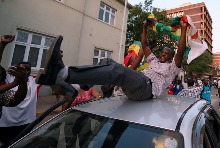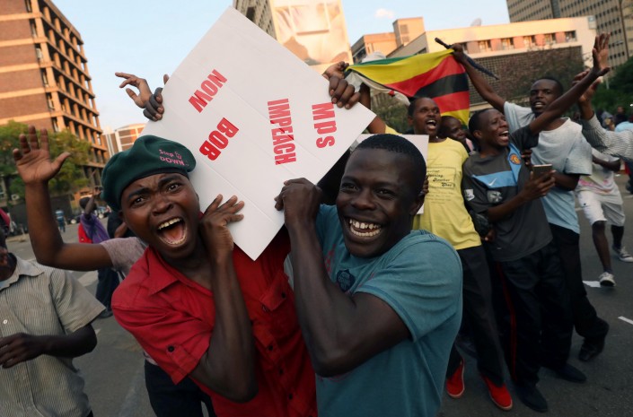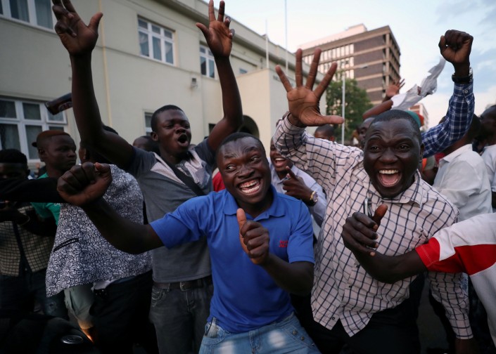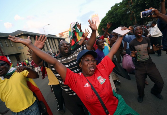 Новость об отставке президента Зимбабве Роберта Мугабе очень быстро распространилась среди жителей столицы страны - Хараре. Шедшие по своим делам после митинга люди, узнав такую весть, фактически парализовали автомобильное движение в центре города. Счастливые люди свистят, машут руками, звонят близким, чтобы сообщить им важную новость.