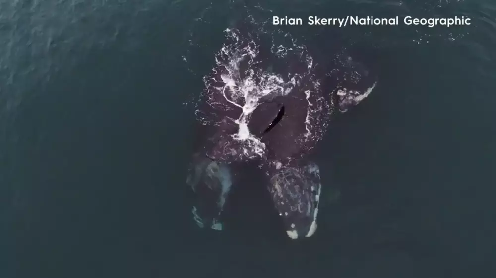 Североатлантические гладкие киты являются одними из наиболее подверженных угрозе исчезновения животных на планете, известная популяция которых оценивается всего в 360 особей. Основная причина их исчезновения - столкновения с судами и попадание в сети для омаров. Эти животные могут вырастать до 16 метров и весить до 63 тонн.