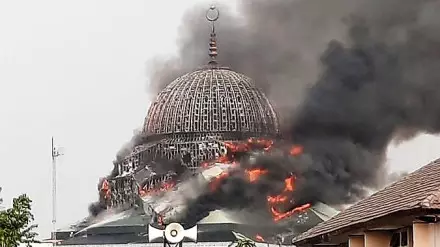 В Джакарте загорелся купол мечети исламского центра. Позже конструкция обрушилась, этот момент на камеры запечатлели очевидцы, передает Tengrinews.kz со ссылкой на Tribunnews.com.