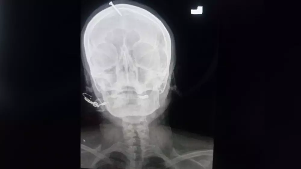 Поисками женщины полиция занялась после того, как ее больничный рентгеновский снимок, на котором отчетливо видно гвоздь, вбитый в голову, стал вирусным в сети.