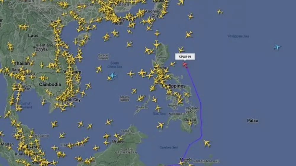 По данным сервиса, с момента вылета из Куала-Лумпура рейс SPAR19 со спикером палаты представителей США Нэнси Пелоси на борту уже был самым отслеживаемым полетом на Flightradar24 среди активных рейсов.