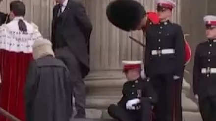 Пятеро военных упали в обморок во время богослужения в честь юбилея правления Елизаветы II Кадр с видео.