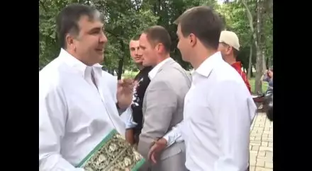 Филатов обвинил Березенко в раздаче денег избирателям. Он назвал кандидата в депутаты "молодым и циничным подонком", после чего вступил в словесную перепалку с Саакашвили. "И вы также деньги раздавайте, Михаил!" - сказал Филатов губернатору. Саакашвили сначала не понял, о каких деньгах идет речь, а потом назвал Филатова "накачанным ублюдком".