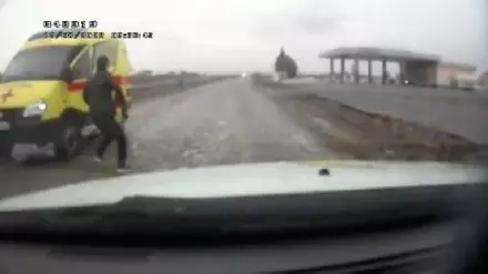 Скорая загорелась, доставляя роженицу в больницу в Жетысу Кадр из видео polisia.kz.