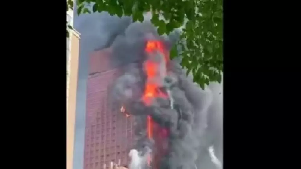 В китайском городе Чанша провинции Хунань 16 сентября в 44-этажном небоскребе, где располагался офис государственной телекоммуникационной компании China Telecom, вспыхнул пожар. По данным местных СМИ, за 20 минут огонь охватил все двухсотметровое здание, передает Tengrinews.kz со ссылкой на Сhina Huanqiu.