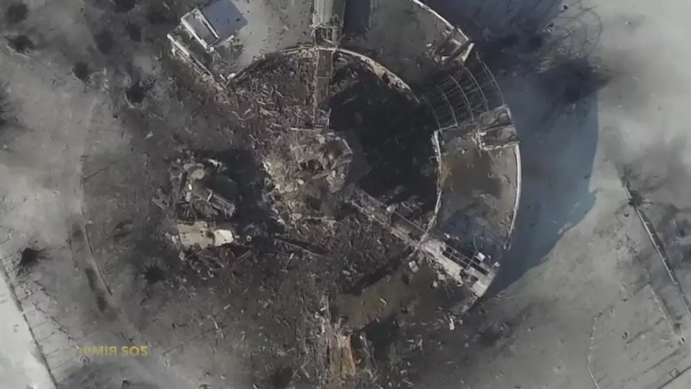 Подразделение беспилотной авиации АРМИЯ SOS опубликовало в YouTube видео разрушенного аэропорта в Донецке, снятое беспилотником.