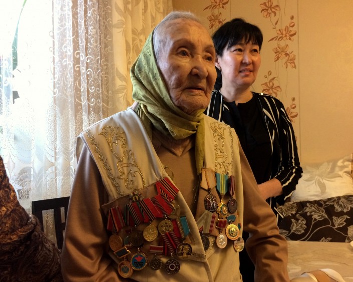 В военные годы актриса выступала с многочисленными концертами на полях сражений на втором белорусском фронте. "Нас было девять человек из разных театров Казахстана. После празднования в мае (1945 года - прим.автора), меня отправили на дальний восток. Там тоже были казахи, выступала для них", - вспоминает актриса.