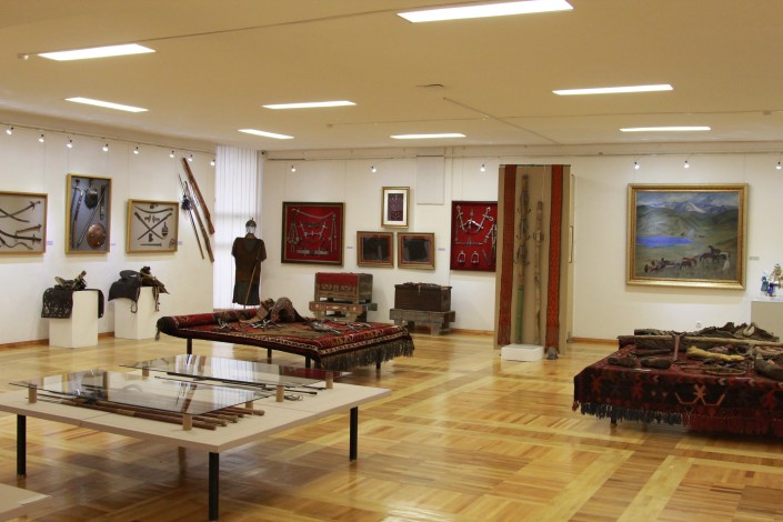 Наряду с произведениями народного прикладного искусства коллекционер впервые выставил свое собрание картин известных казахстанских художников: Николая Хлудова, Абылхана Кастеева, Жанатая Шарденова, Салихитдина Айтбаева, Нагимбека Нурмухаммедова и Саркиса Саносяна.