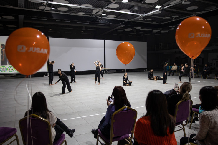 Социальная составляющая – важная часть современного пластического театра, в котором используется универсальный язык, и его можно показывать в любой стране. При поддержке партнера Jusan постановка стала еще более доступной. В ней использовались не только элементы языка жестов – в зрительном зале также можно было найти необычные приспособления: воздушные шары, звукоподавляющие наушники и другое оборудование. Они помогают зрителям с проблемами слуха лучше понять спектакль через вибрацию музыки.