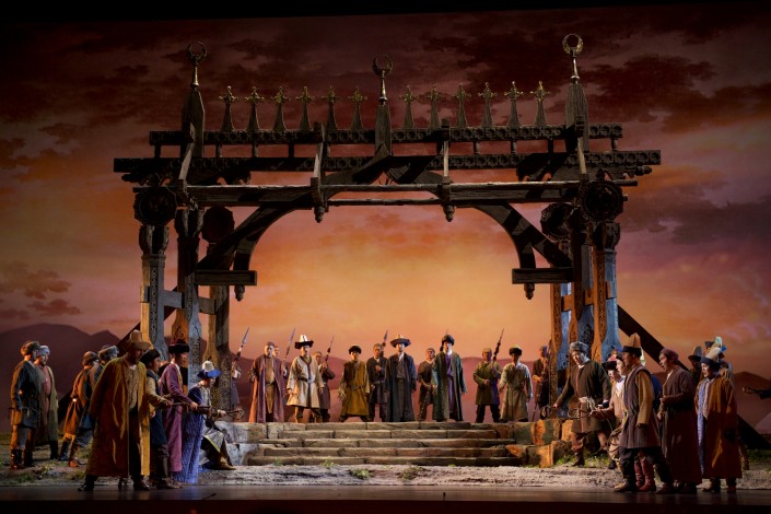 Постановка создавалась выдающимися деятелями искусства Казахстана и Италии. Музыкальный руководитель и дирижер - заслуженный деятель Казахстана, правнук композитора А. Жубанова -  Алан Бурибаев. Режиссер-постановщик - известный итальянский режиссер Джанкарло дель Монако, режиссер-консультант - народный артист Казахстана, профессор Есмухан Обаев, главный хормейстер - заслуженный деятель Казахстана Ержан Даутов. Художественное оформление оперы выполнили знаменитый сценограф современности Эцио Фриджерио и художник по костюмам - обладательница премии "Оскар" Франка Скуарчапино, ассистент художника по костюмам Арасель Досмуратова. Хореографы-постановщики - заслуженные деятели Казахстана Турсынбек Нуркалиев и Галия Бурибаева.