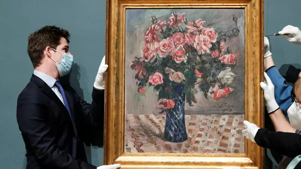 Картина под названием "Цветы" была написана немецким экспрессионистом Ловисом Коринтом и принадлежала Густаву и Эмме Майер до того, как они бежали из своего дома в нацистской Германии в Брюссель во время Второй мировой войны.