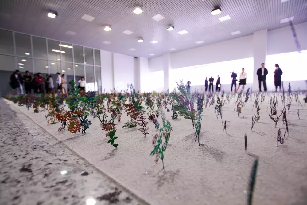 Известный британский скульптор Цадок Бен-Давид представил в Астане уникальную инсталляцию из 20 тысяч металлических цветов, передает корреспондент Tengrinews.kz.