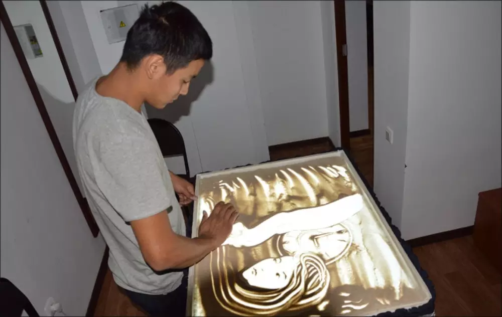 21-летний Елторе Балабай - единственный в Актобе художник по песку. Впервые юноша заинтересовался этим молодым направлением в искусстве четыре года назад, а сейчас покоряет зрителей своим мастерством. Художник-самоучка умело выкладывает на стеклянном столе с подсветкой красивые образы из песка и готовит для поклонников целые представления, передает телеканал 24.kz.