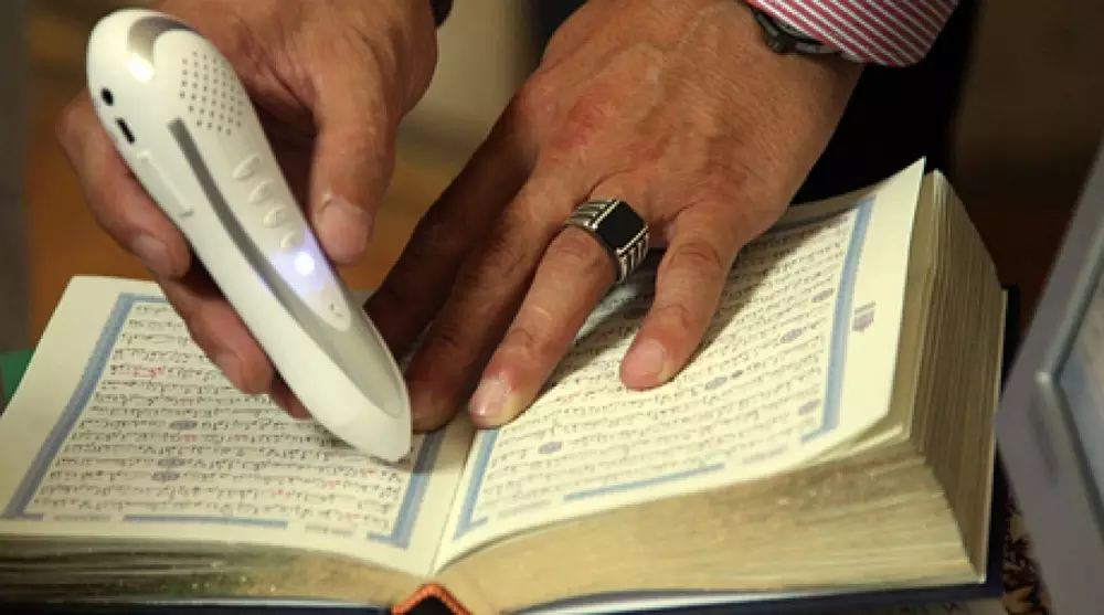 В Алматы на выставке по случаю священного месяца Рамазан был продемонстрирован "говорящий" Коран, передает корреспондент Tengrinews.kz. Это устройство в виде ручки, которое необходимо приложить к любому отрывку из специального Корана, после чего оно начнет читать текст в указанном месте. Ручка и Коран идут в комплекте.