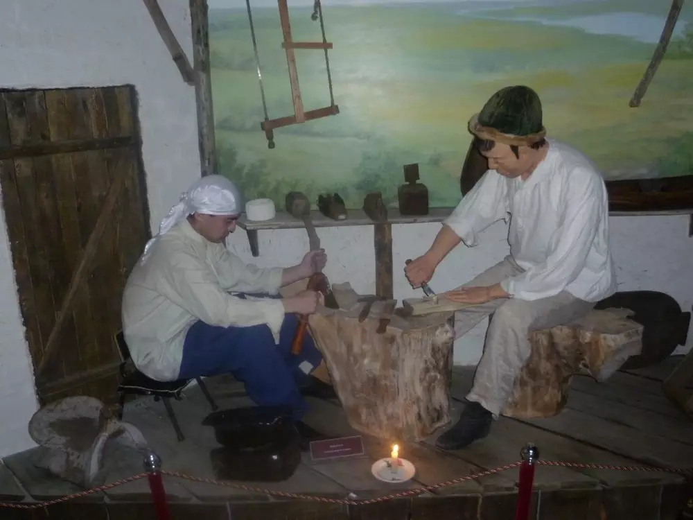 Так, пока фигура женщины андроновского племени стояла в стеклянной витрине, рядом с тумбы сходил ее двойник. В кузнице молодой мужчина, сидя напротив неподвижного мастера, начинал стучать молотом по подкове. Девушки за ткацким станком начинали перебирать нити, в гостиной музея ходили купцы.