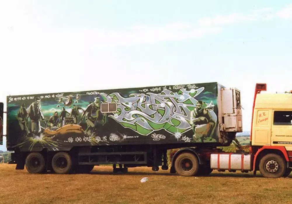 Граффити за авторством Бэнкси появилось на борту грузового фургона длиной почти 10 метров в 1998 году во время фестиваля "Гластонбери". "Бэнкси спросил, может ли он использовать одну сторону нашего грузовика как большой холст. Истинный смысл "Молчаливого большинства" в том, чтобы изобразить апогей рейв-вечеринок и хип-хоп-сцены того времени", - приводят организаторы аукциона слова владельцев разрисованного автомобиля.