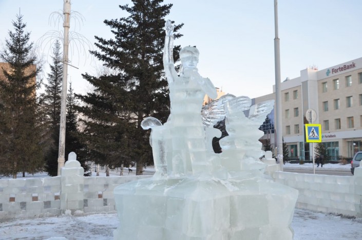Жители Кокшетау сразу же решили, что в композиции изо льда изображен казахстанский певец Димаш Кудайберген. Однако, по словам автора скульптуры, это не так.