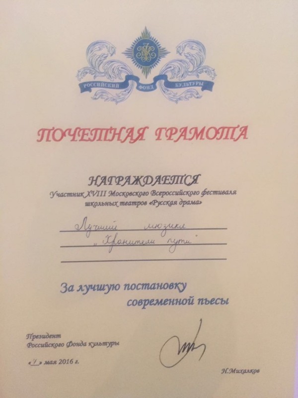 Казахстанский мюзикл "Хранители пути" признан лучшим на XVIII московском всероссийском фестиваль школьных театров "Русская драма", сообщает корреспондент Tengrinews.kz.