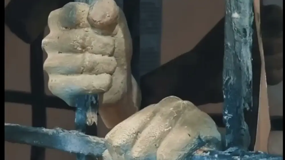 Алмаз Дуйсебаев снял экспонаты музея на видео и с помощью графики заставил фигуры двигаться. На кадрах показана жизнь женщин в лагере. Кто-то работает на швейной машинке, кто-то пытается согреть младенца в холодной камере, другие читают письма от своих детей.