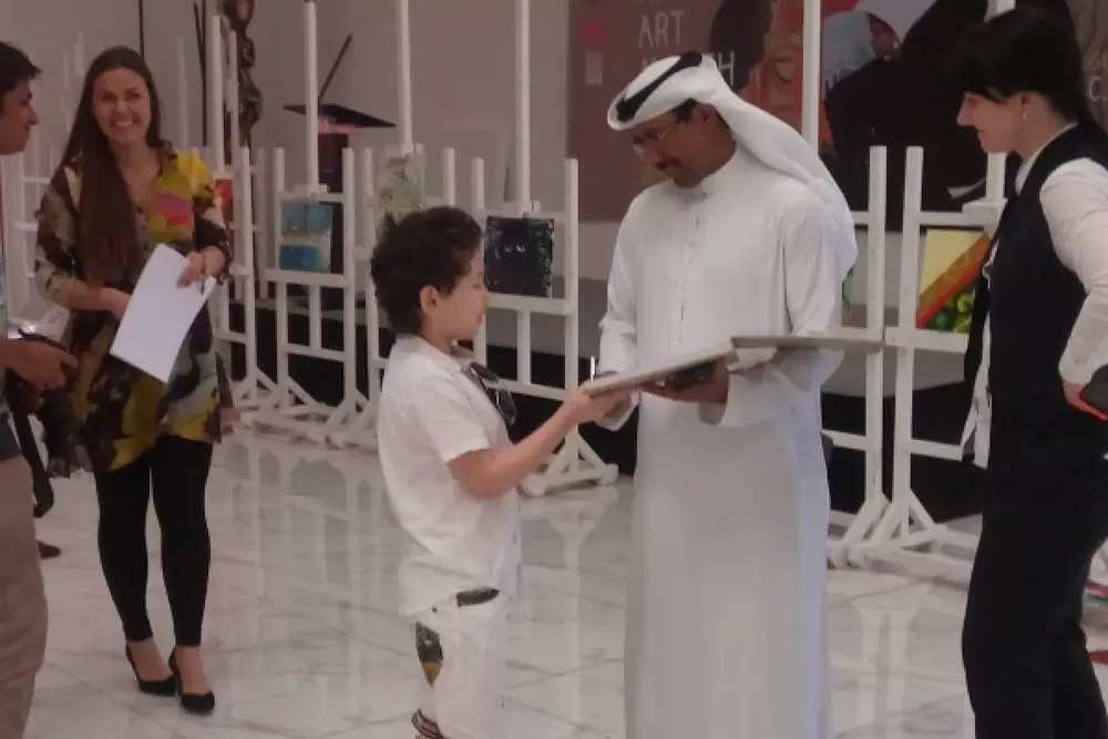 Юный художник Марсель из Хромтау, принявший участие во Всемирной выставке художественного творчества Art Dubai, покорил местного правителя - владельца галереи, сообщает портал Vaktobe.kz.