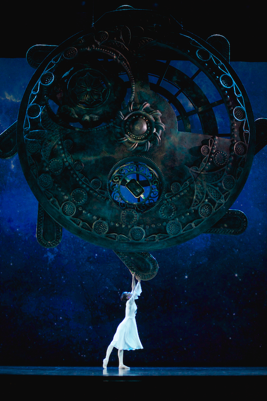 Прекрасная хореография, музыка и третья важная составляющая этого балета – сценография. Шесть деревьев, висящих в перевернутом виде, на черном фоне всего пространства сцены создавали загадочную картину. У каждой детали было свое предназначение. Огромные песочные часы, расположившиеся в левом углу сцены, полные в начале спектакля, опустошились в конце. На удивление публике желтые листья со смертью главного героя опали. За эти чудеса отвечал сценограф Виктор Караре, воплотивший в жизнь эскизы Раймондо Ребека.