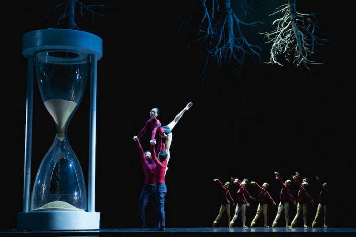 Прекрасная хореография, музыка и третья важная составляющая этого балета – сценография. Шесть деревьев, висящих в перевернутом виде, на черном фоне всего пространства сцены создавали загадочную картину. У каждой детали было свое предназначение. Огромные песочные часы, расположившиеся в левом углу сцены, полные в начале спектакля, опустошились в конце. На удивление публике желтые листья со смертью главного героя опали. За эти чудеса отвечал сценограф Виктор Караре, воплотивший в жизнь эскизы Раймондо Ребека.