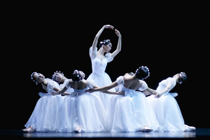 В первом отделении вниманию публики предложили романтический балет "Шопениана", поражающий художественной гармонией, редкостной музыкальностью и богатством танцевального рисунка. Чистота линий буквально завораживала взгляды зрителей. Артисты создавали разные фигуры: одни были похожи на цветы, другие же - на геометрические узоры. На сцене царил мир грез поэта, вокруг которого будто порхали воздушные балерины. Приглушенный свет с голубым оттенком придавал спектаклю еще большую романтичность.