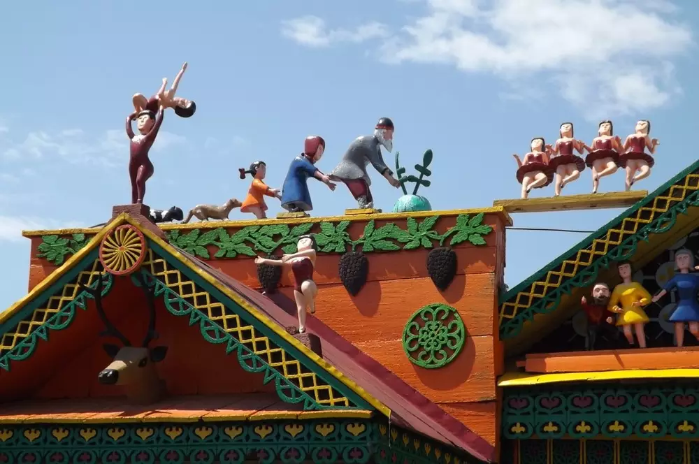 При жизни Глазкова часто давала интервью журналистам и рассказывала о своем сказочном царстве. Началось же все больше 30 лет назад. Муж Матрены Ивановны всю жизнь проработал столяром, а выйдя на пенсию, решил превратить свое жилище в расписной терем. Фасад дома он раскрасил яркими красками, установил на крыше персонажей русских народных сказок и героев советских телевизионных передач.