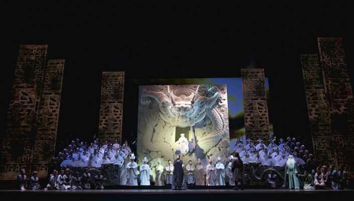 Эта постановка заставляет искать ответы не только на конкретные вопросы, которые задает претендентам на руку и сердце Турандот. Загадки загадывает публике и сам постановщик. А спрятаны они в сценографии, костюмах и даже в движениях артистов, все здесь имеет свой тайный смыл.