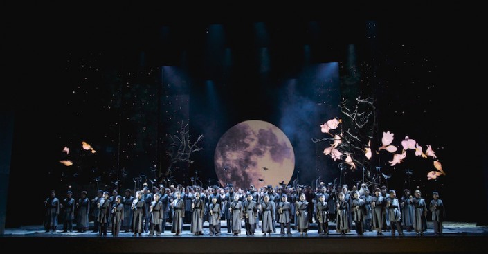 Известно, что "Астана Опера" удивляет каждой новой премьерой. Казалось бы, уже ничего нельзя придумать лучше, чем то, что было представлено публике за пять лет, но нет, и на этот раз слушатели были изумлены. В начале от дождя, самого настоящего, капли которого питали засушливую степь и высохшие деревья. Природа плачет, что нет в царстве Турандот любви и тепла, проливной дождь омывает землю, и народ надеется, что сердце безжалостной принцессы оттает. А с появлением на сцене детей, несущих с собой мир и добро, безжизненные деревья благодаря новейшим театральным технологиям, расцветают.