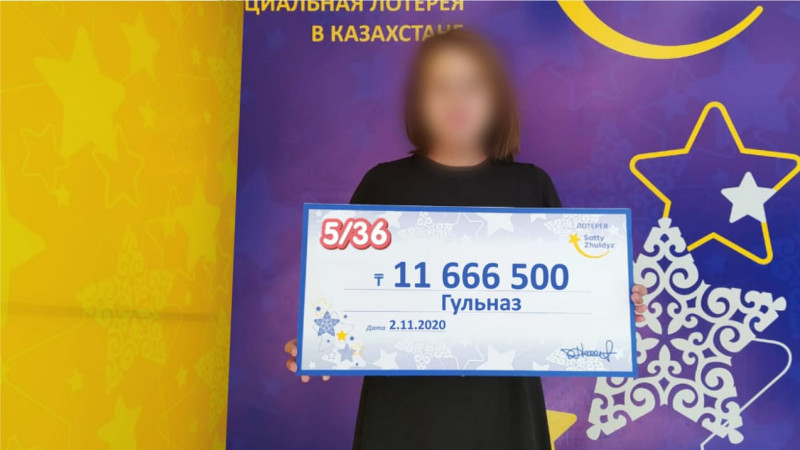 На прошлой неделе удача оказалась на стороне жительницы Алматы по имени Гульназ (прим.: имя изменено). Женщина выиграла первый джекпот в новой тиражной лотерее "5/36". Сумма выигрыша составила 11 666 500 тенге.