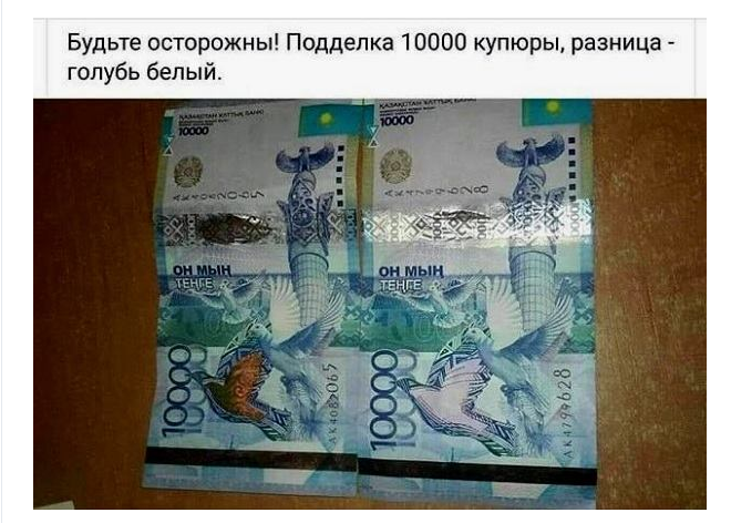 В Нацбанке прокомментировали снимок купюры номиналом десять тысяч тенге с белым голубем на лицевой стороне. Некоторое время назад казахстанцев через мессенджеры и соцсети неизвестные лица призвали быть бдительными, демонстрируя "поддельную" банкноту, передает корреспондент Tengrinews.kz.
