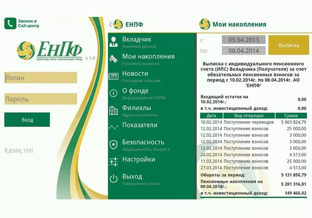 По его словам, ЕНПФ зарегистрировался в компаниях Google, Apple, Microsoft и получил соответствующие сертификаты для разработки своего мобильного приложения. "По своему функционалу все версии мобильного приложения позволяют вкладчикам в режиме онлайн связываться с ближайшим филиалом или call-центром, получать новости от ЕНПФ и просматривать выписки со своих пенсионных счетов. Всего с момента запуска мобильного приложения ENPF до 1 ноября 2014 года было произведено свыше 11 тысяч скачиваний", - проинформировал Ерденаев.
