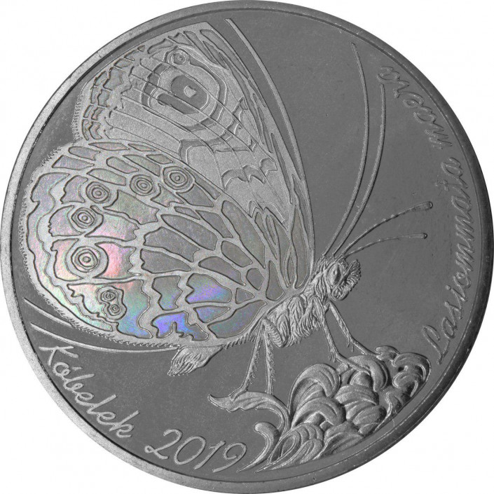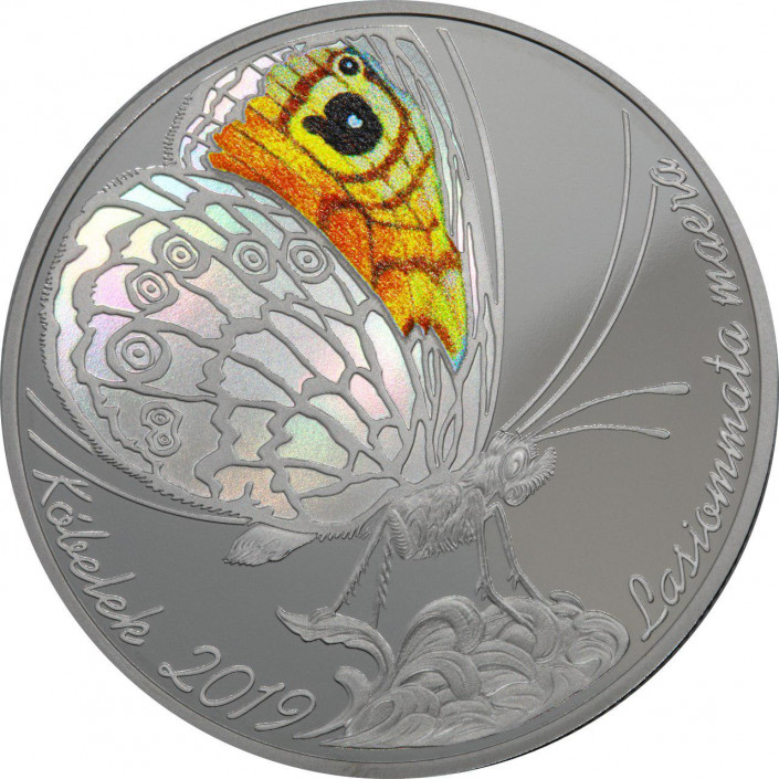 Также выпускаются коллекционные монеты Kόbelek. Lasiommata maera из сплава мельхиор с применением технологии нанесения интерференционного радужного изображения номиналами 200 (пять тысяч штук) и 100 тенге (20 тысяч штук).