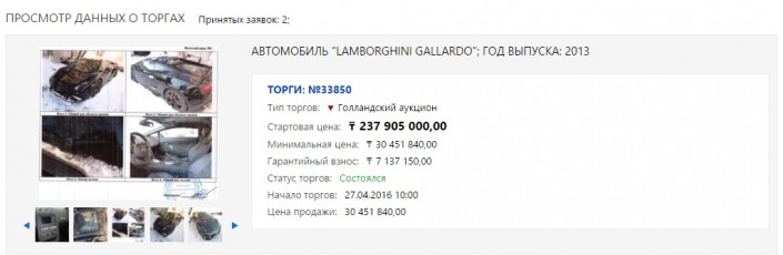 Lamborghini Gallardo Кайрата Жамалиева продан на торгах, передает корреспондент Tengrinews.kz