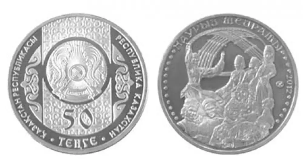 Национальный банк Казахстана выпустил монеты "Праздник Наурыз" из серебра и из сплава нейзильбер, передает "Интерфакс-Казахстан". Монеты из серебра номиналом 500 тенге и из сплава нейзильбер номиналом 50 тенге выпущены в обращение 20 марта 2012 года, сообщил Нацбанк. На лицевой стороне (аверсе) монет в центральной части на орнаментальном фоне изображен герб Казахстана. В нижней части число "50" ("500" на монете из серебра) и надпись "Тенге", обозначающие номинал монеты. В левом и правом секторе зеркально изображен элемент национального орнамента. По окружности надпись "Республика Казахстан" на государственном языке и русском языках. Надписи разделены точками. На оборотной стороне (реверсе) монет изображен стилизованный шанырак юрты, как символ дома, объединяющий под своим кровом многонациональный народ Казахстана, встречающий народный праздник весны - Наурыз мейрамы. В верхней части по окружности надпись "Праздник Наурыз" на государственном языке. В правой части фрагмент бусового ободка, число "2012", обозначающее год чеканки и товарный знак казахстанского монетного двора. В левой части фрагмент бусового ободка. Боковая поверхность (гурт) монет из сплава нейзильбер - рифленая, диаметр - 31 миллиметр, масса - 11,17 грамма и тираж - 300 тысяч штук. Монеты из серебра 925 пробы, боковая поверхность (гурт) - рифленая, масса - 31,1 грамма, диаметр - 38,61 миллиметра, качество изготовления - "proof" и тираж - 4 тысячи штук.